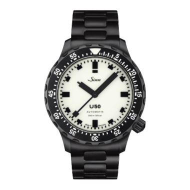 500本限定のU50.S.Lは通常のようにインデックスと針だけが光るものではなく、文字盤の特殊な夜光塗料によって文字盤全体と回転ベゼルのキーマーカーが光ります。