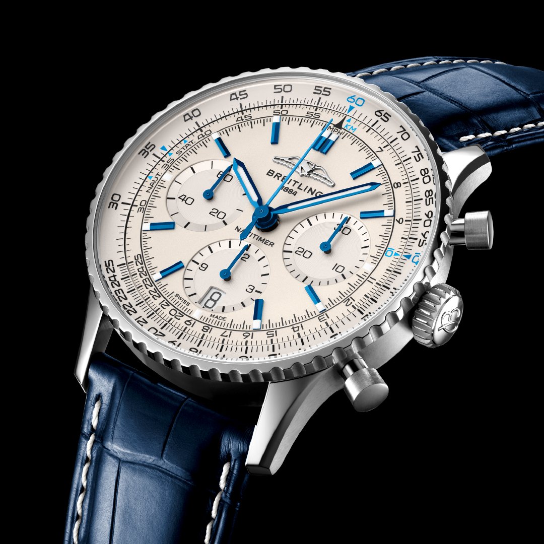 1952年、ウィリー・ブライトリングは、パイロットが飛行に必要な計算をすべて行える、手首装着型の回転計算尺付きクロノグラフを開発しました。2年後、そのデザインは、国際オーナーパイロット協会(AOPA)の公式タイムピースのデザインとして発表されました。「ナビゲーションタイマー」、すなわち「ナビタイマー」の誕生です。