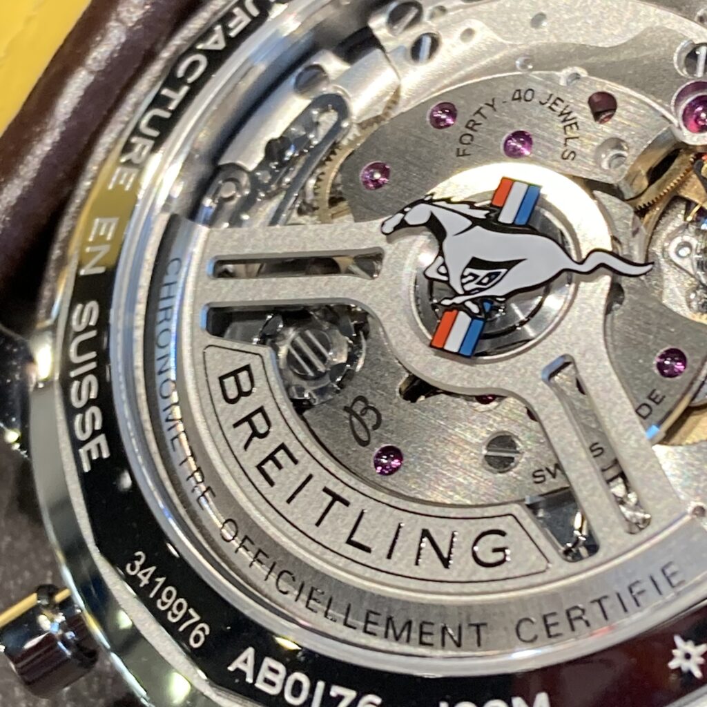 やはりB01キャリバーなので、シースルーバックからは綺麗な機械が見えます。