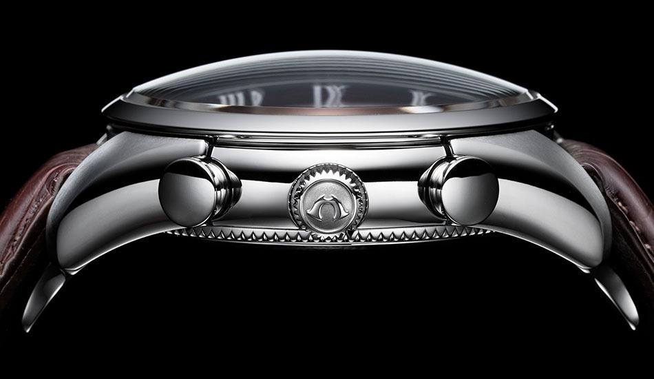 12時間計の1/4秒クロノグラフは2つのプッシュボタンで操作。