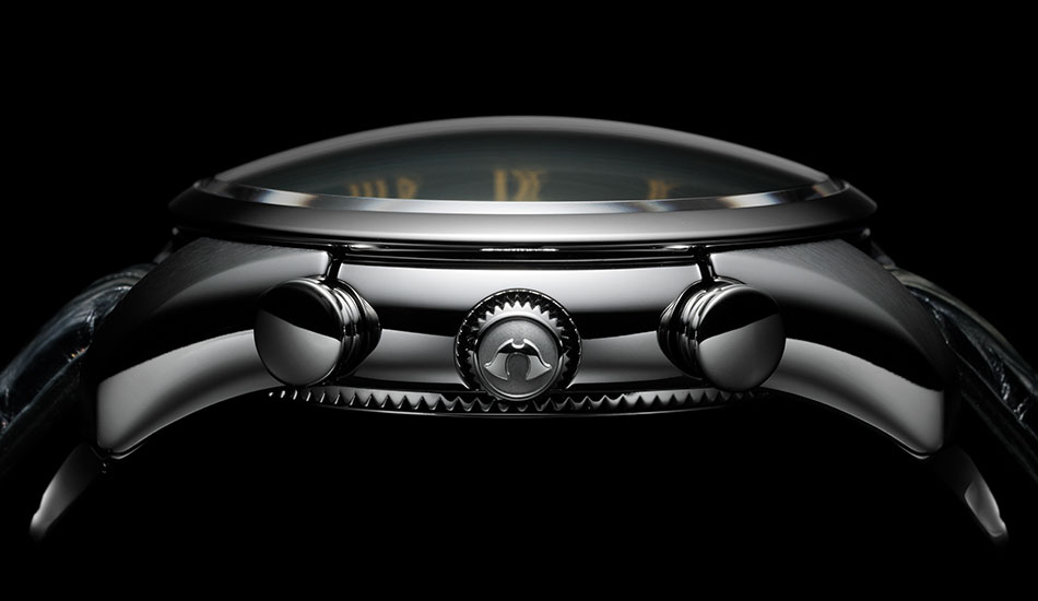 12時間計の1/4秒クロノグラフは2つのプッシュボタンで操作。