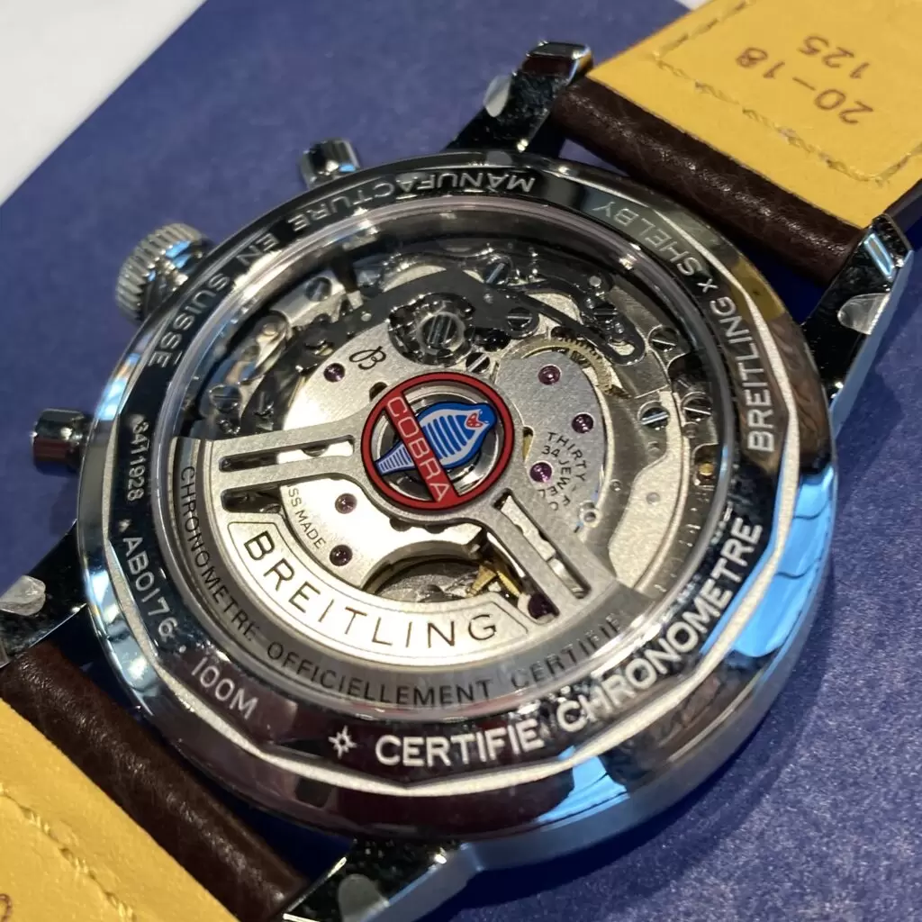 シースルーのケースバックから美しい機械がコブラのエンブレムと共にご覧になれます。