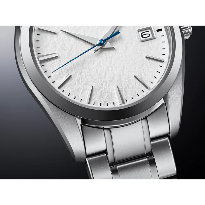 匠の技によって表現された雪白パターンのダイヤルは上品で高級感のあるデザインです。