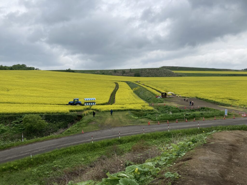 先日の安平の道の駅の帰り、雨が一時やんだので近くの菜の花畑に寄り道。一面の黄色がとってもきれいでした。