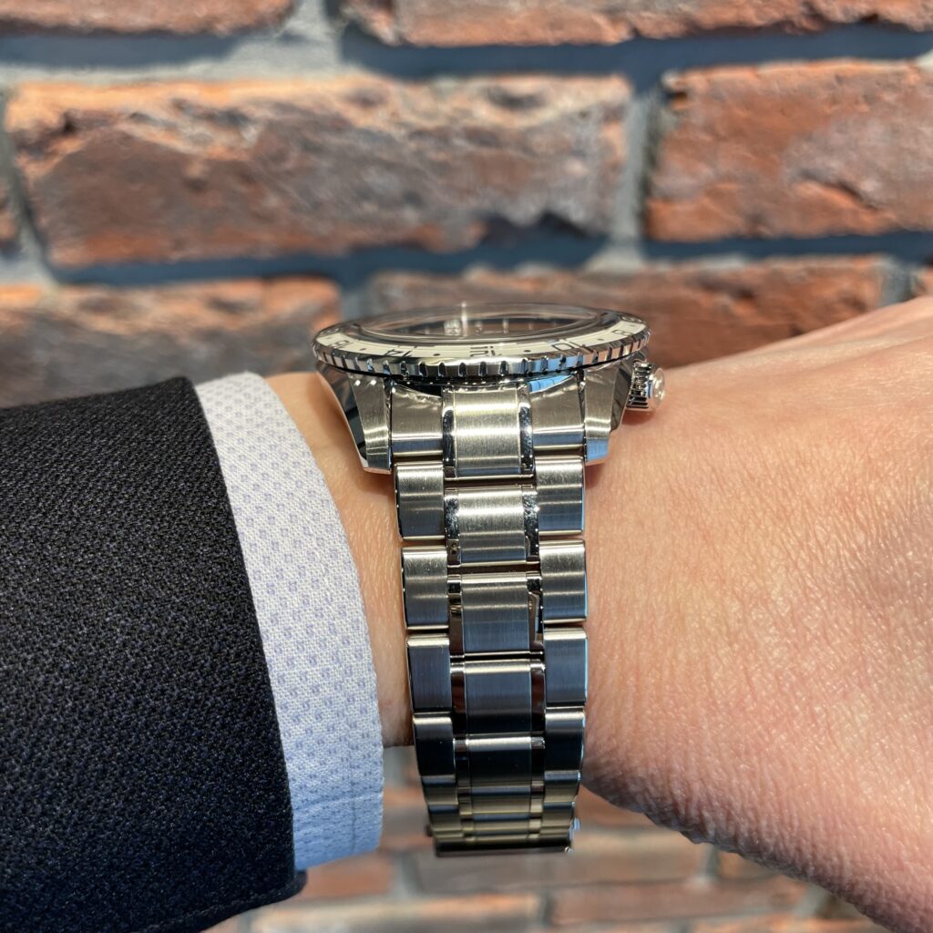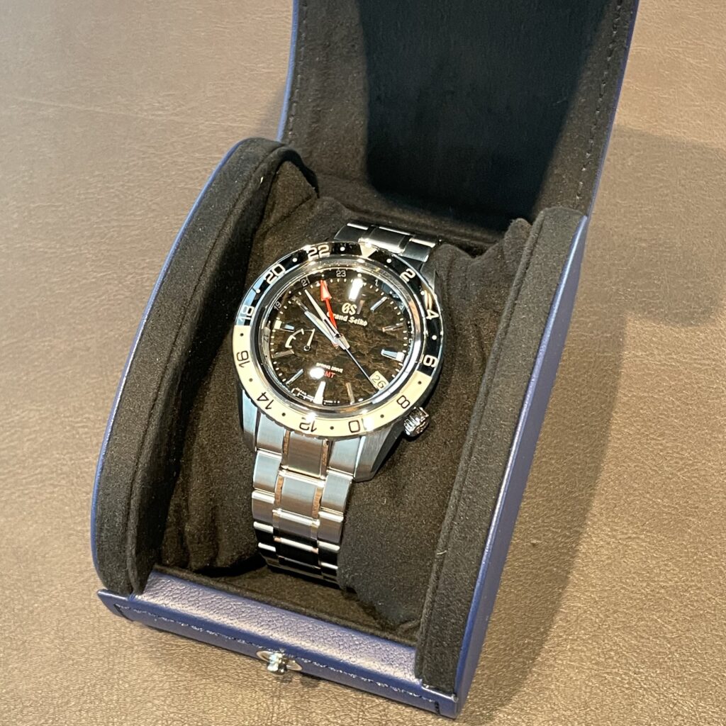 GMT機能つきスプリングドライブムーブメント「キャリバー9R66」を搭載しており、