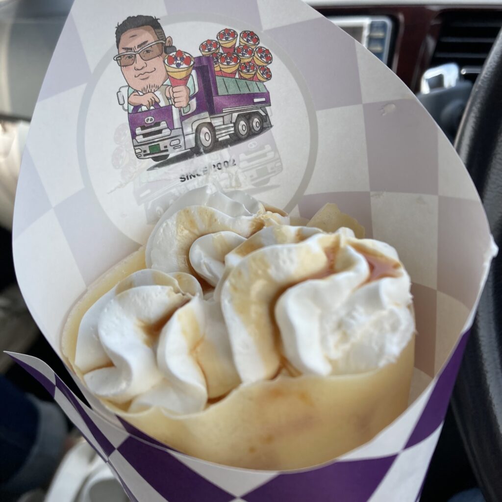 石狩の方にございます車屋さん(?)の敷地内に無理くり存在するかのような謎のクレープ屋さん。