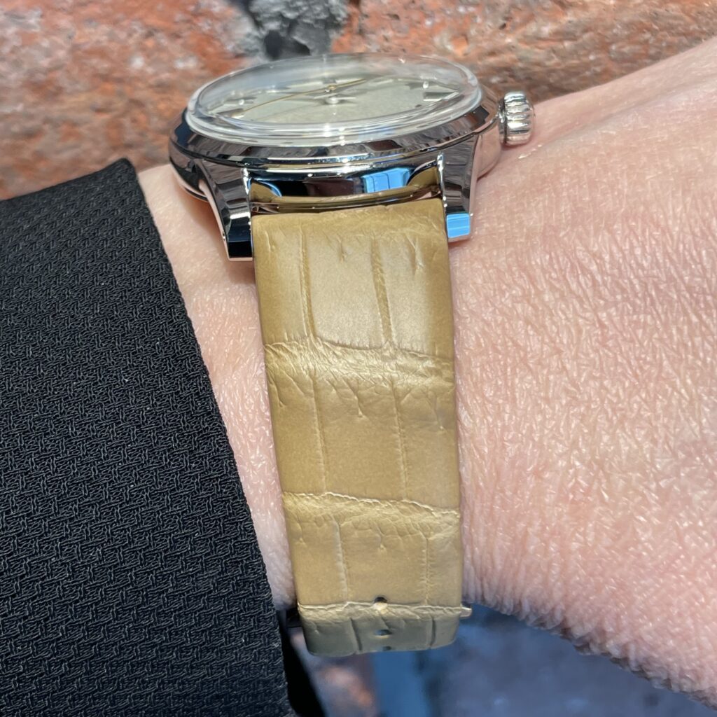 雪景色の中に待望の暖かな春を感じる丸みを帯びたダイヤルデザインと高級感を感じさせるシャンパンゴールドのダイヤルカラーは必見です。特別なシーンを彩り、腕時計をつける人に自信と余裕を与えてくれる製品となっております。
