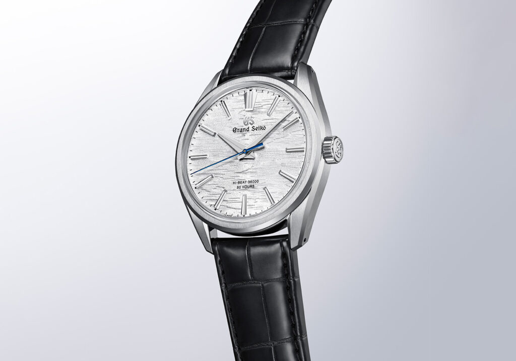 ザラツ研磨を駆使して磨き上げられたケースは、グランドセイコーのドレスウオッチにふさわしい上質な輝きを放っています。美しいシースルーバックの裏蓋も必見です。