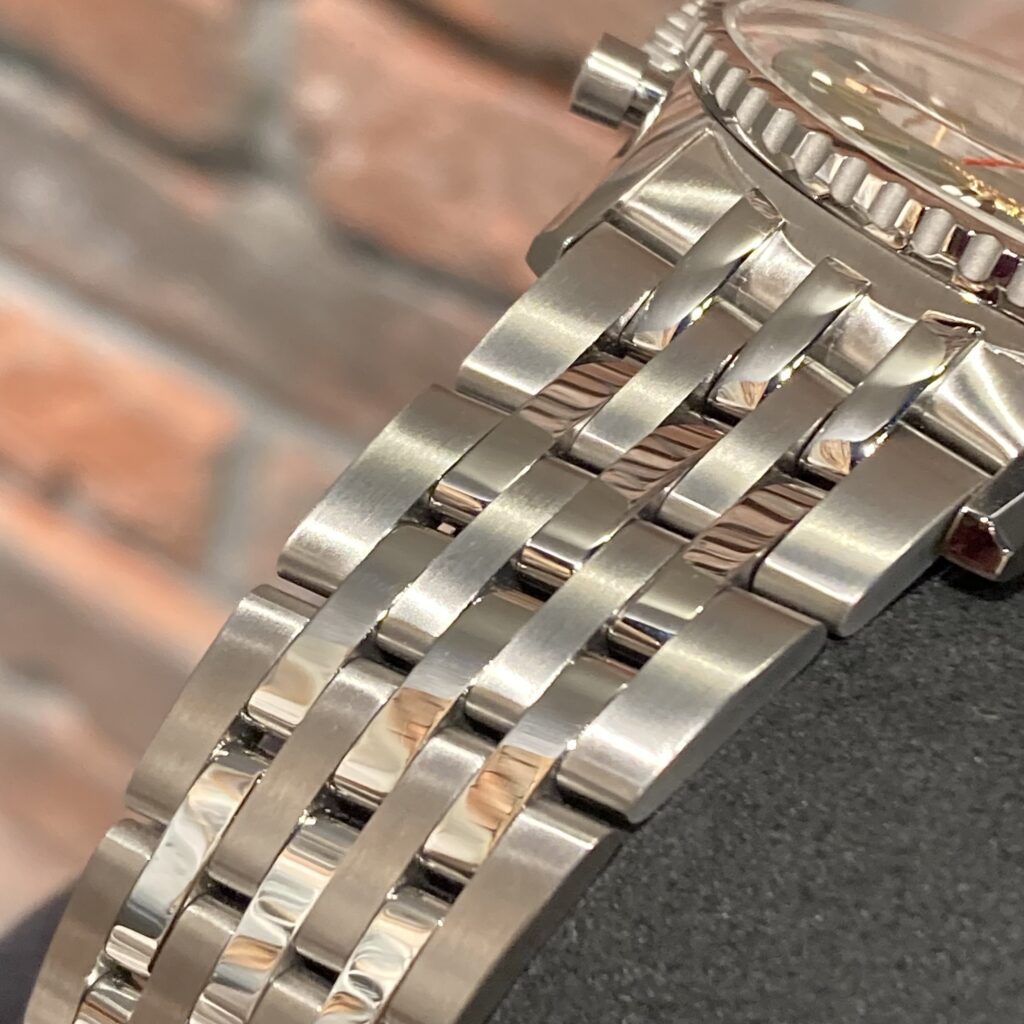 ポリッシュのコンビになったことで落ち着いた雰囲気に。よりナビタイマーのビンテージ感を高めます。