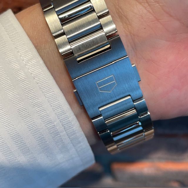ケースはポリッシュとサテン仕上げが施されたステンレススティール製で、そのタフさが美しさを引き立てています。
