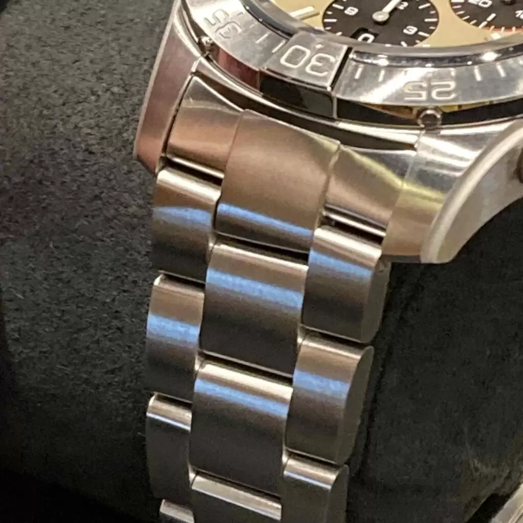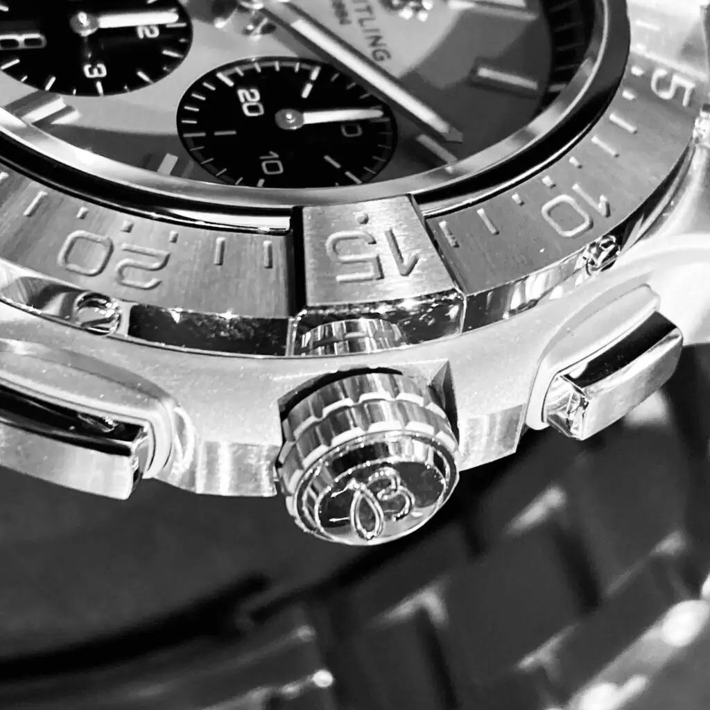 スーパーオーシャンにも匹敵する300mの防水性能を持ち、エッジの立った重厚で武骨な本体に包まれた自社製自動巻ムーブB01。