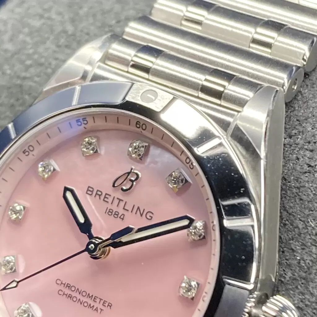 ブライトリングでは最小になるのではないでしょうか。女性の腕に実にしっくりくるサイズ感と