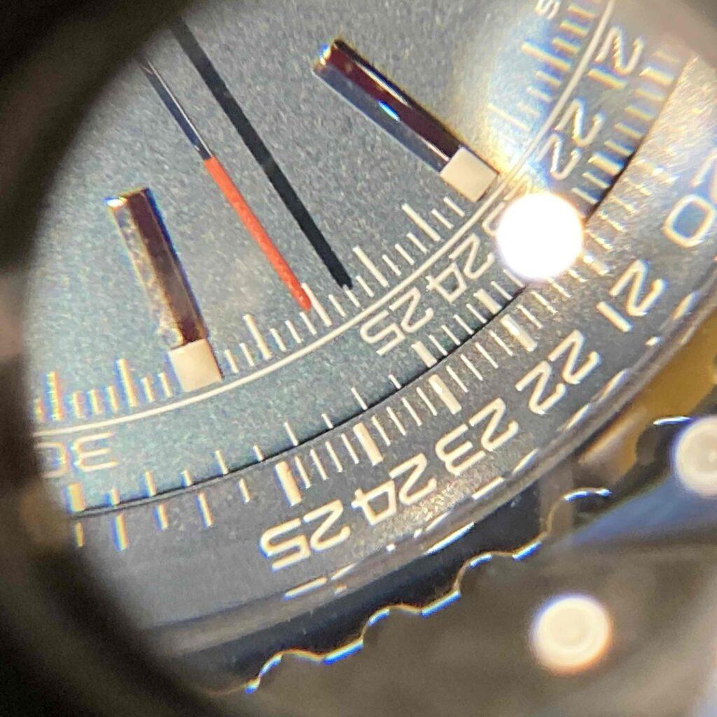 じっくりとキズミで見てみると、ナビタイマーの精密で機能的な美しさを改めて感じさせられます。