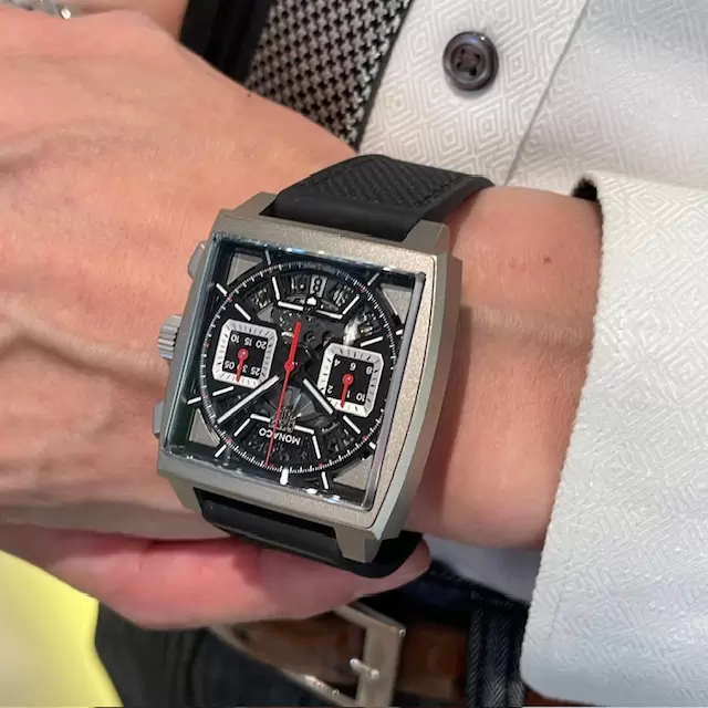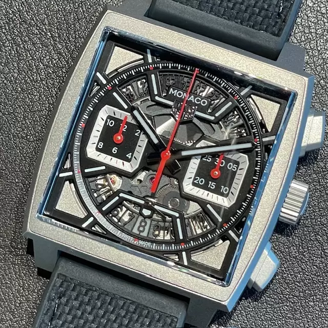 スクエア型のケースは、一目でタグ・ホイヤー モナコとわかる象徴的なデザインです。
