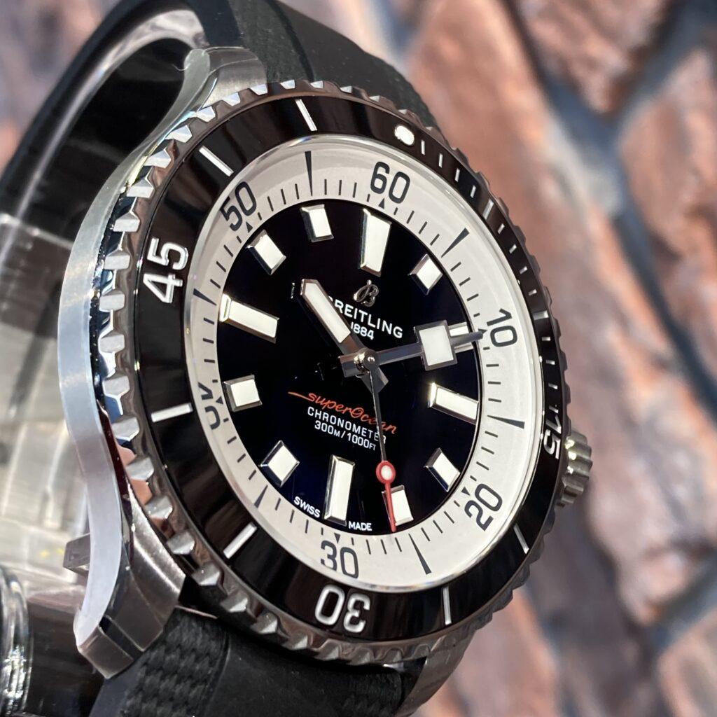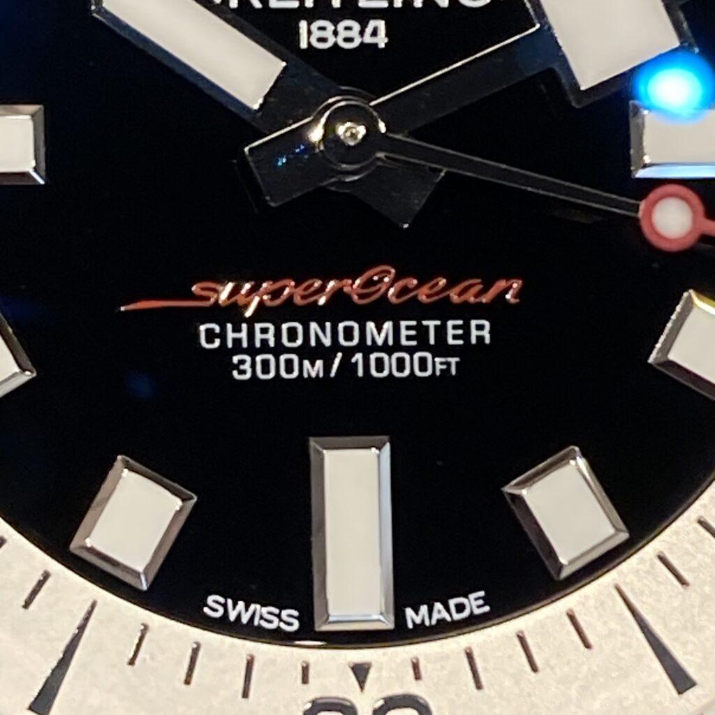 スーパーオーシャンの文字盤は防御力重視の厚塗りタイプ。