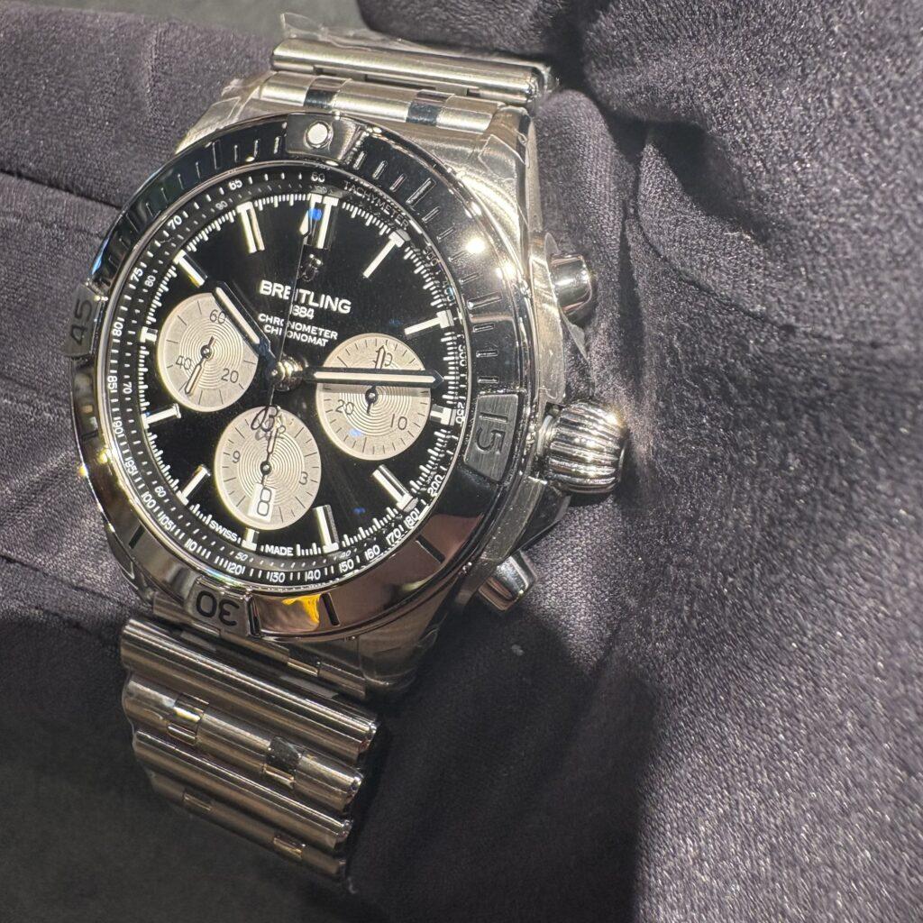 今から2年ほど前入社4か月の私は、毎日たくさんの時計に触れる中で、「いつかは自分の一本を」と思っていました。そんなある日、ショーケース越しに出会ったのがブライトリング クロノマット AB0134101B2A1。その瞬間、もう目が離せませんでした。