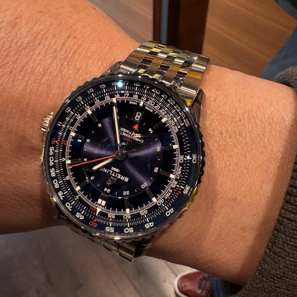 お持ちのブライトリングとは違う、ブルーの色合いや、シンプルなGMTがとても似合っています。