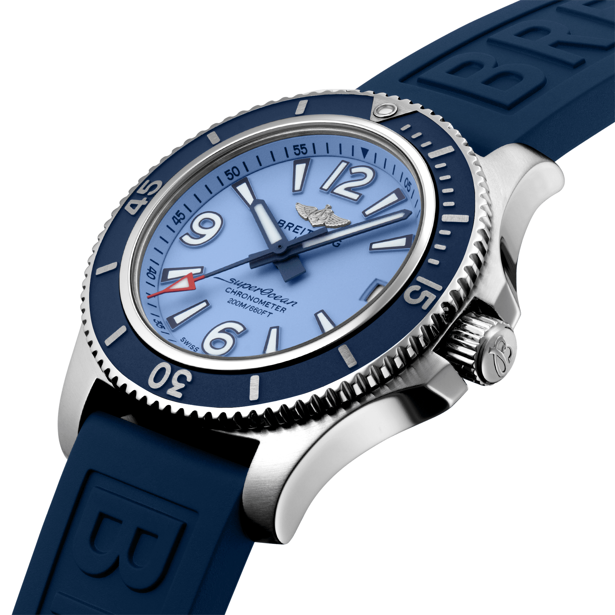 • コンパクトなスーパーオーシャン オートマチック 36は、機能、パフォーマンス、そしてスタイルを実現する、女性のためにデザインされた時計。36mmのステンレススチール製ケースにステンレススチール製ブレスレット、もしくはホワイトの穴留め式またはフォールディングクラスプ式ダイバープロ II ラバーストラップという組み合わせ。ダイヤルカラーはライトブルー。ラチェット式逆回転防止ベゼルを装備し、防水性は20気圧(200メートル)。クールでコンテンポラリーなスーパーオーシャン オートマチック 36は、アクティブでスタイリッシュな女性向けの究極のスポーツウォッチです。