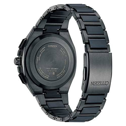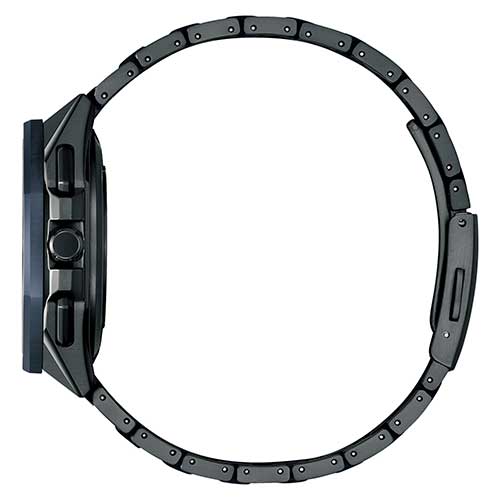 ベゼルとバンドの中駒にDLCブルーを採用。ラメを練り込んだブラックの文字板は、漆黒の静かな宇宙空間に浮かぶ星々を表現しました。ブラックとダークブルーの組み合わせが大人の落ち着きと特別感を演出します。
