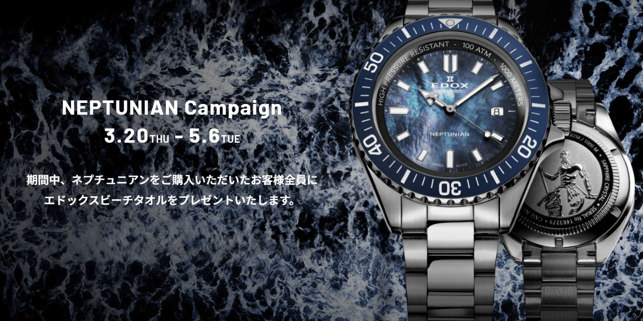 期間中、ネプチュニアンをご購入いただいたお客様全員にエドックスビーチタオルをプレゼントいたします。