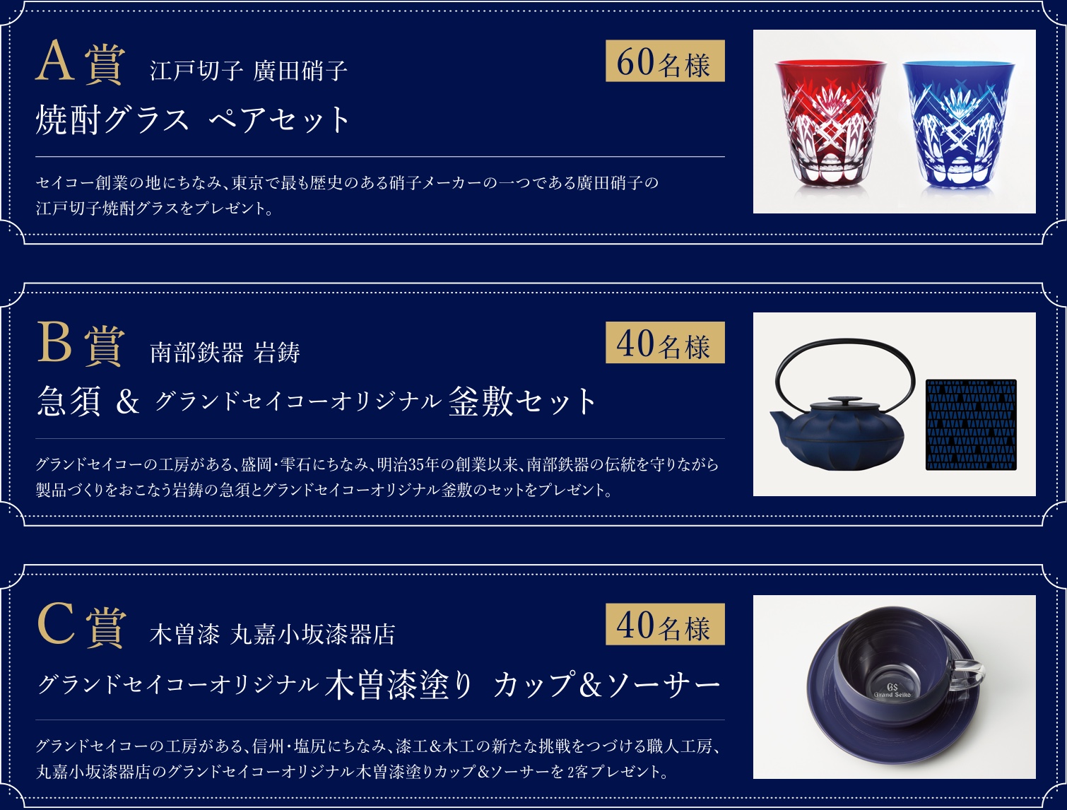 日本の匠がつくる逸品を抽選で合計140名様にプレゼントいたします。