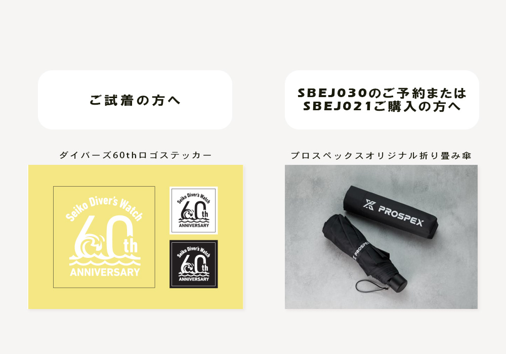 期間中、「SBEJ030」をご試着いただいた方には、ダイバーズ60thロゴステッカープレゼントをプレゼント。