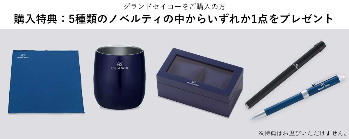 フェア期間中にグランドセイコーをご購入のお客様に、5種類のノベルティの中からいずれか1点をプレゼントいたします。