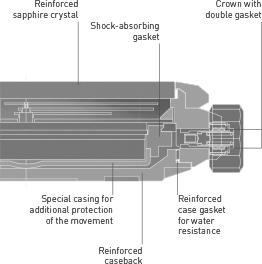 ダブル-Oリング機構をさらに進化させ、500m防水を実現。