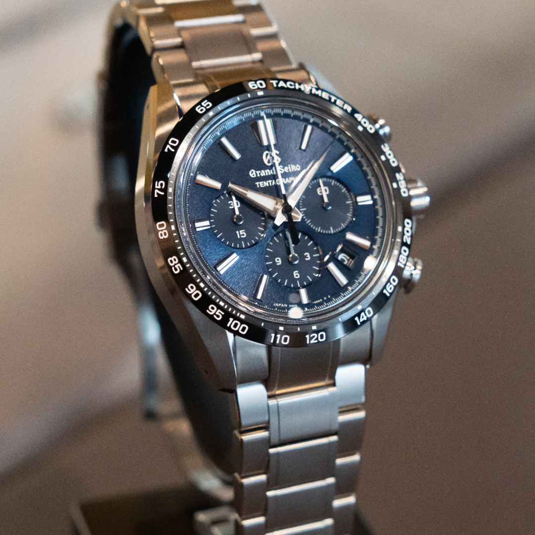 『グランドセイコー』では、スプリングドライブのクロノグラフというのは、何種類ものバリエーションがあるのですが、機械式自動巻きでのクロノグラフというのが希少な存在であることも、大きな理由です。それでこのモデルを選びました。
