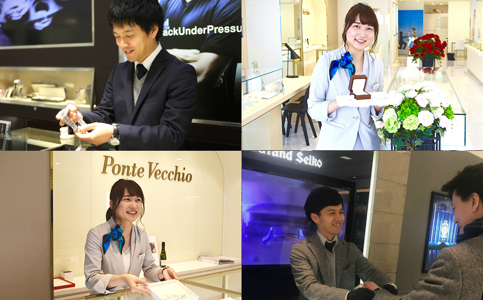 先輩方から一から教えて頂くことができ、販売員同士で教えあい高めあいながら働くことが出来る会社です。私自身もご結婚指輪について教わりながら、腕時計のことを説明してお互いに高めあいながら働ける環境が魅力です。
